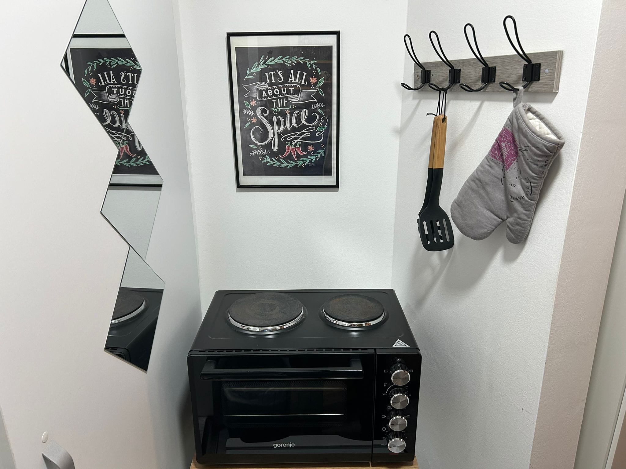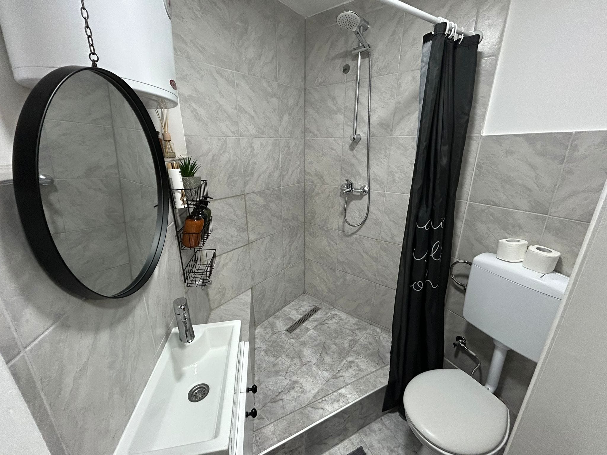 Apartman je namješten ugodno, za bezbrižan boravak. Kupatilo je opremljeno tuš kabinom i fenom/sušilom za kosu.